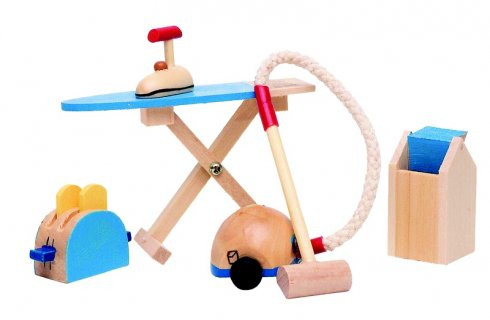 Fából készült babaház kiegészítő készlet, mellyel minden kislány babája el tudja végezni a házimunkát.