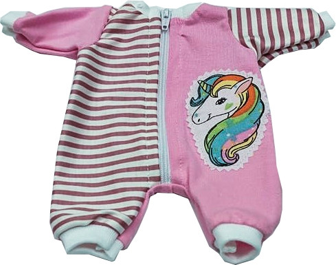 A rózsaszínű rugdalózó 40-45 cm méretű játékbabára való.