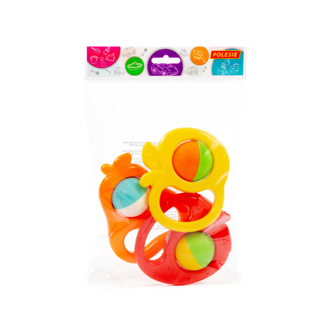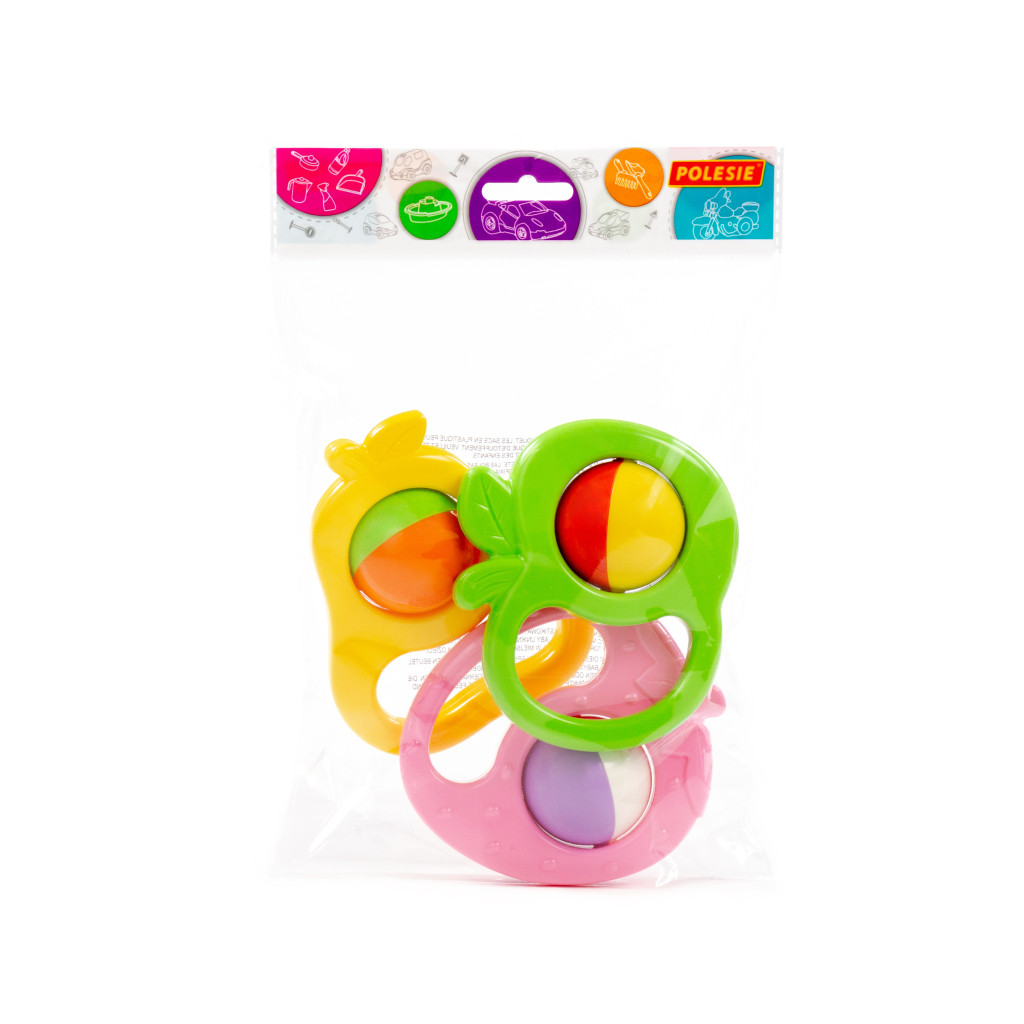 Ezzel a csörgőkészlettel a babák játék közben felfedezhetik a színeket és hangokat, miközben vidáman mozgatják és rázzák kedvenc kis gyümölcseiket.