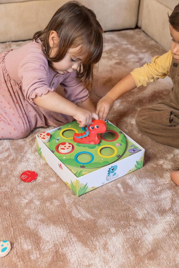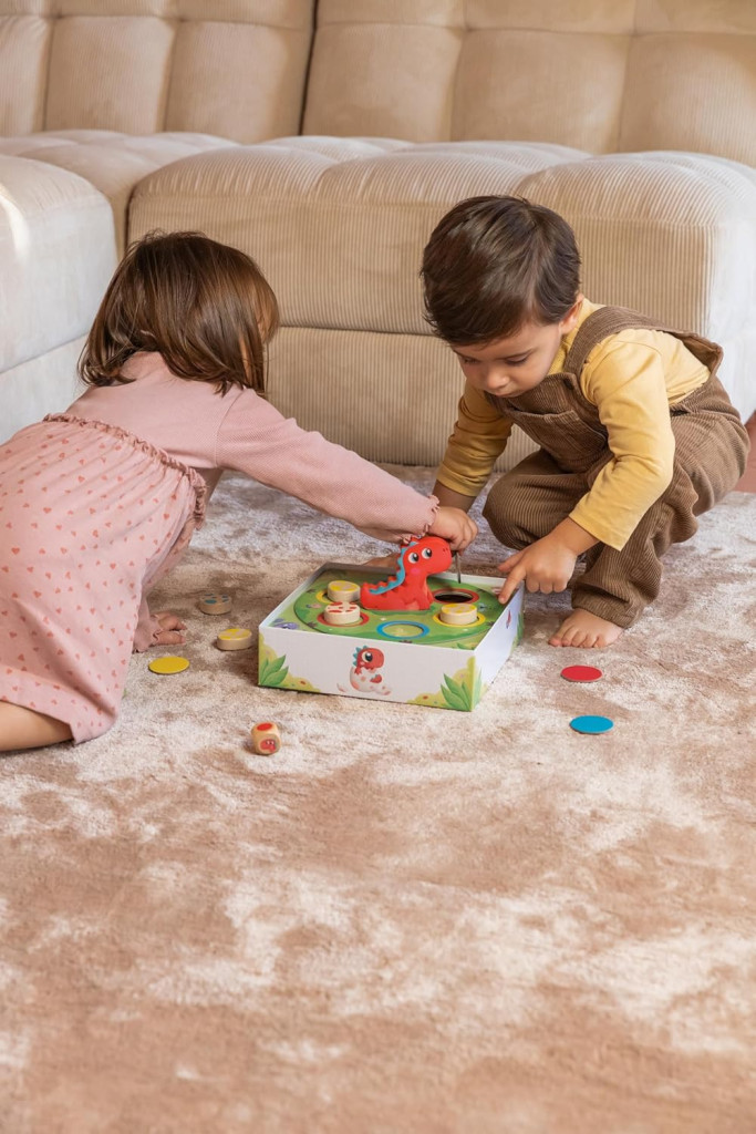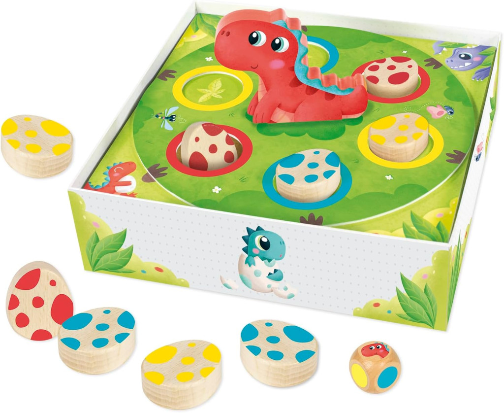 Egy kooperatív játék, ahol a játékosok segítenek Mummy Dino-nak megtalálni az elveszett tojásait. Ez az izgalmas játék egy forgó táblát, egy Mummy Dino figurát, 9 tojást és egy fa kockát tartalmaz, elősegítve a csapatmunkát és a problémamegoldó készségeket játékos környezetben.