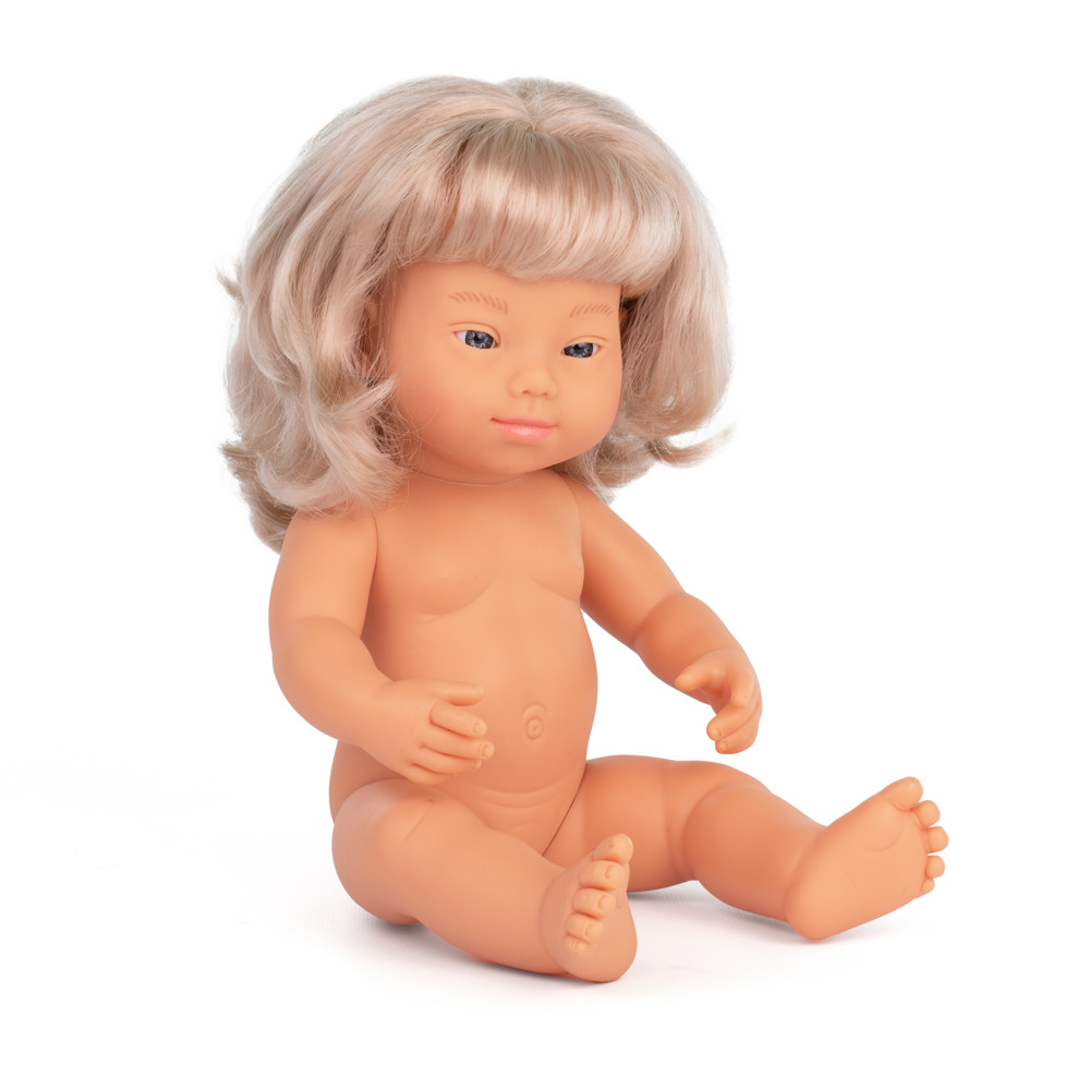 Down-szindrómás baba - lány, hajas, fürdethető, 38 cm 10 hó+