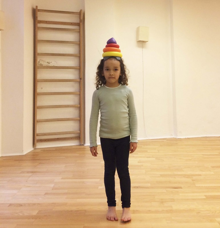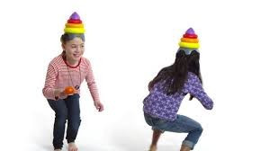 Tedd a fejedre a karikákból álló egyensúlyozó kalapot, és próbálj eljutni a szoba egyik sarkából a másikba, úgy hogy nem esik le a fejedről.