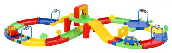 A csomagban van 2 darab kisautó, melyek könnyen gurulnak a tetszőlegesen összeépíthető pályán.