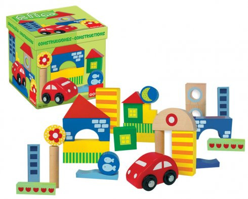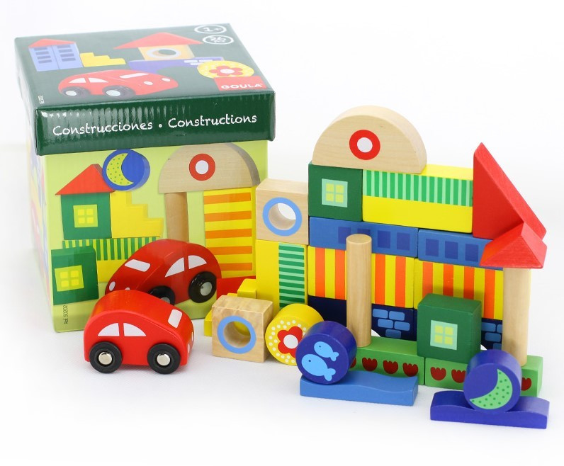 A Goula faépítő készlet 26 élénk színű fa építőelemet tartalmaz, különböző formában és méretben, így a kisgyermekek különféle szórakoztató jelenetet készíthet, képzelőerejét fejlesztheti.