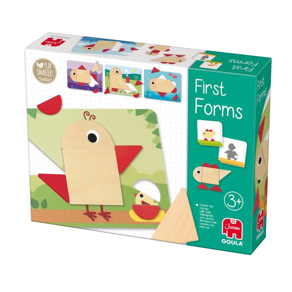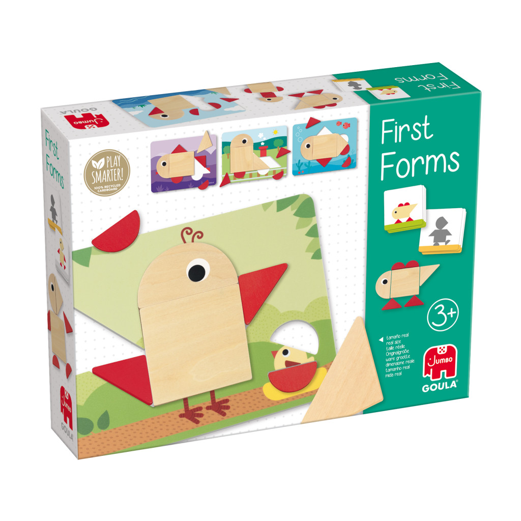 A Goula első formakirakó játéka a 6 db különböző alaplappal és a 20 db eltérő nehézségi fokozatú feladatkártyával változatos játéktevékenységet kínál a gyerekeknek.