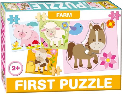 A játék 4 különböző puzzle szettet tartalmaz. Doboz mérete: 19×27×4 cm,