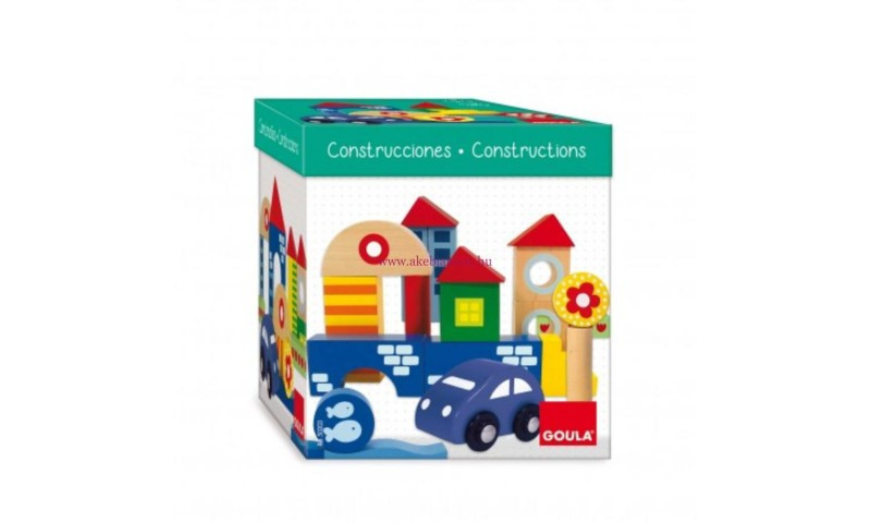 A Goula faépítő készlet 41 élénk színű fa építőelemet tartalmaz, különböző formában és méretben, így a kisgyermekek különféle szórakoztató jelenetet készíthet, képzelőerejét fejlesztheti.