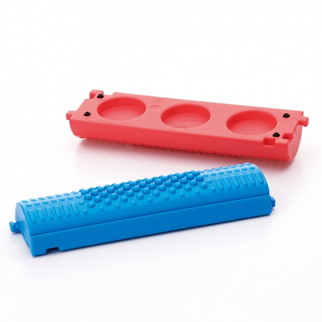 A készlet tartalma: 8 db egyenes, domború, kiemelkedő pöttyös felületű egyensúlyozó elem.