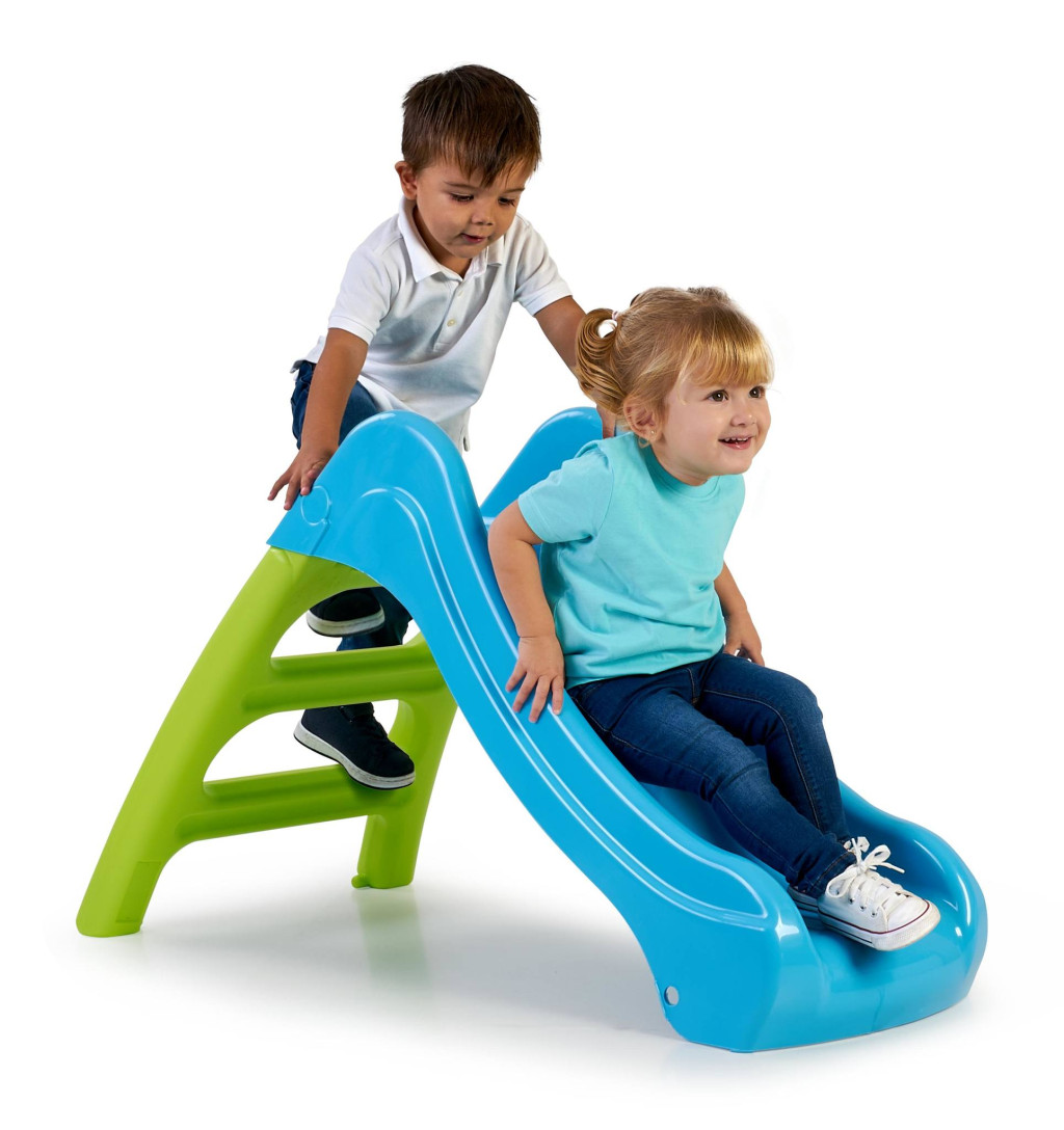 A csúszda egyszerűen kinyitható és összecsukható, tárolása könnyen megoldható.