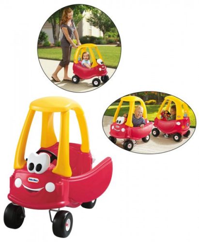 A lábbal hajtható autó piros és sárga színei, mosolygós szája és nagy szemei vidám, játékos jelleget kölcsönöznek neki. A játék kivehető lábtartóval rendelkezik, így a gyermek saját maga is tudja hajtani a kis járművet, viszont ha elfárad egy felnőtt segítségével akár tolható autóvá is átalakítható. Ebben segít a hátsó részébe süllyesztett tolórész is.