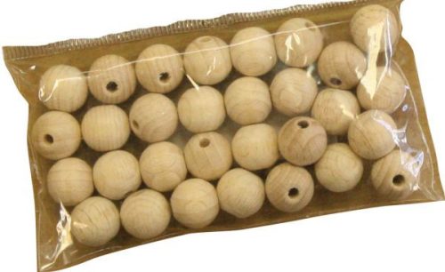 Fűzhető fa golyók, 30 db, natúr, 1,2 cm