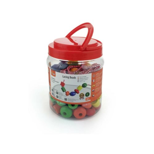 Gyöngyfűző játék különböző méretű, színes fagyöngyökkel.