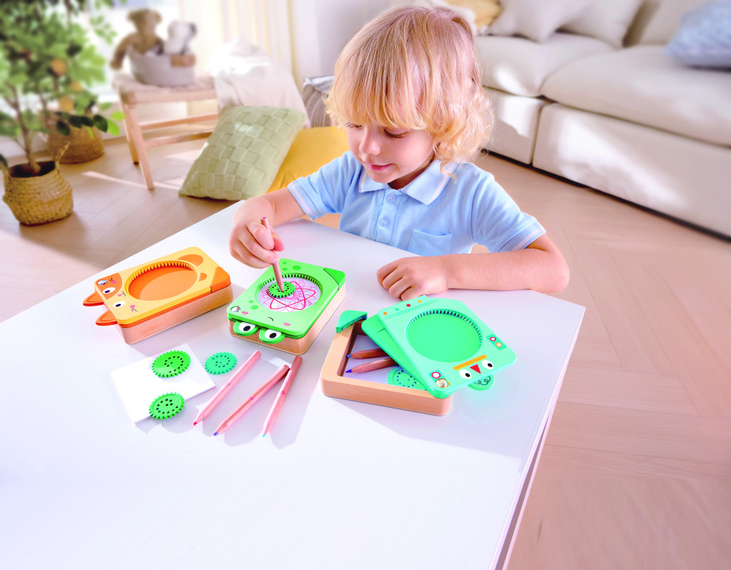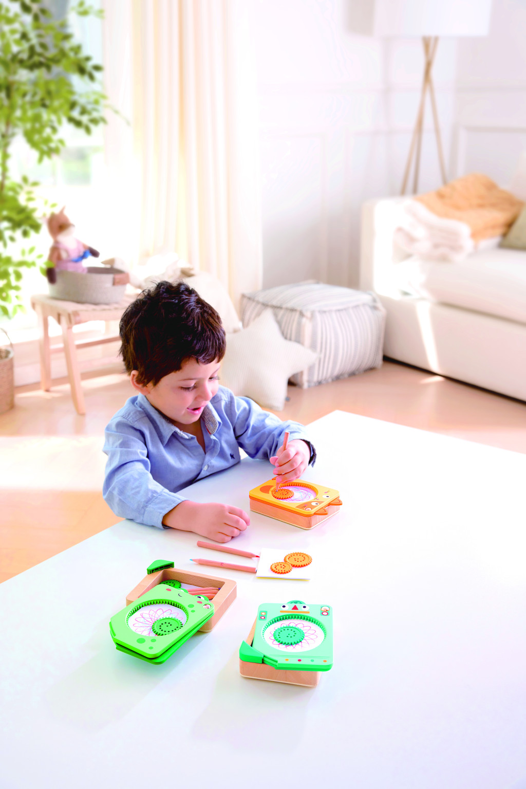 A Hape Mini mandala egy különleges kreatív játék, amellyel a gyerekek könnyedén varázsolhatnak látványos mintákat.