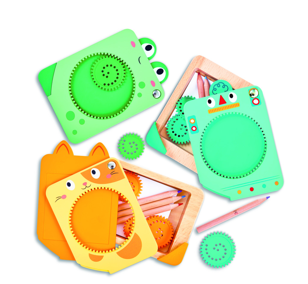 A fogaskerekek forgatásával izgalmas, szimmetrikus rajzok készíthetők, így minden alkotás egyedi lesz.