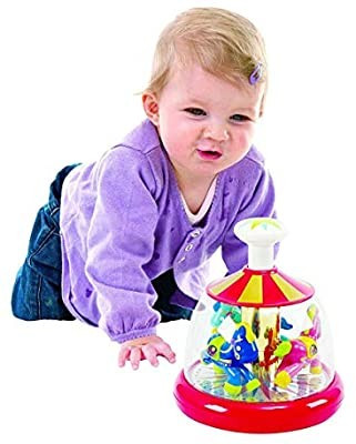 A körhinta tetején lévő fehér gomb lenyomásával, a csengő hangon kívül a lovak elkezdenek körbe-körbe forogni.
