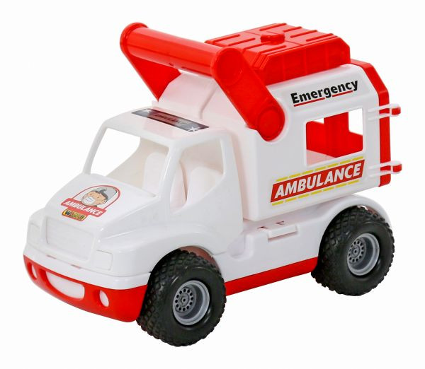 Minőségi, strapabíró műanyagból készült, tetején egy masszív fogantyúval, hogy könnyű legyen felkapni és odébb vinni. A piros-fehér színű mentőautó teteje és a hátulja nyitható. Oldalain Ambulance felirat és ablak található. Strapabíró kivitele miatt, nem