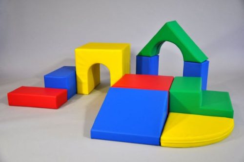 A műbőrrel bevont habszivacs modulok masszív elemei többféle variációban építhetők össze.