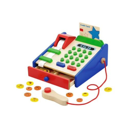 A kis fából készült pénztárgép minden boltos és piacos szerepjáték elengedhetetlen kelléke.