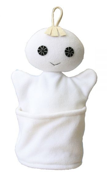 Szelektív baba, fehér - fehér üveg - kesztyűbáb felnőtt kézre