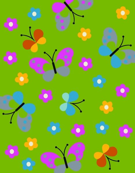 vidám virág és pillangó mintás szőnyeg.