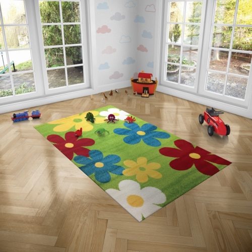 gyerekszoba hangulatát meghatározza a szőnyeg színe és mintája.