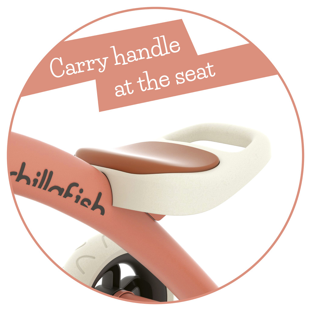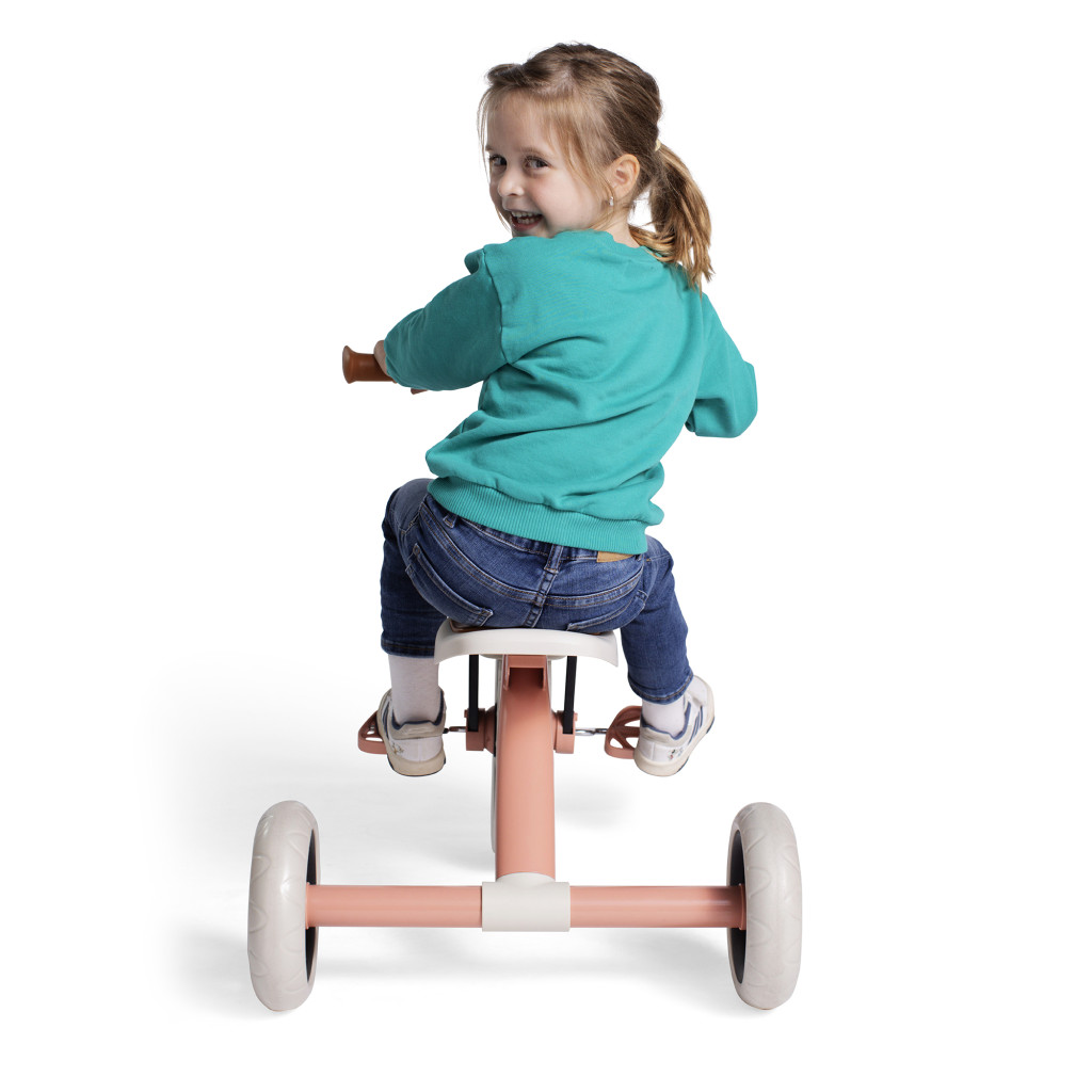 Ezt a lazacszínű Chillafish háromkerekű triciklit már 2 éves kortól ajánljuk.