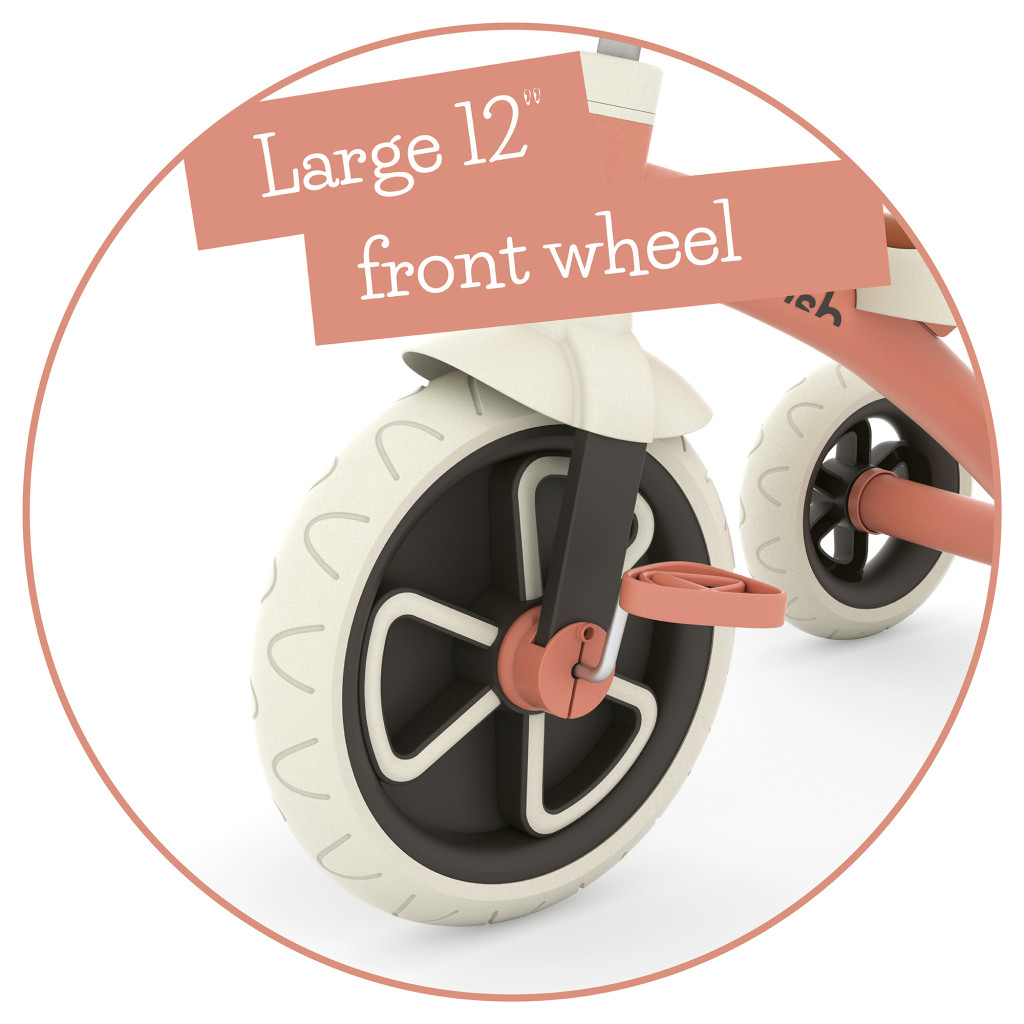 Nagy, 12 colos első kereke segíti a gyerekeket a lendület megszerzésében, míg a széles hátsó tengely extra stabilitást biztosít.