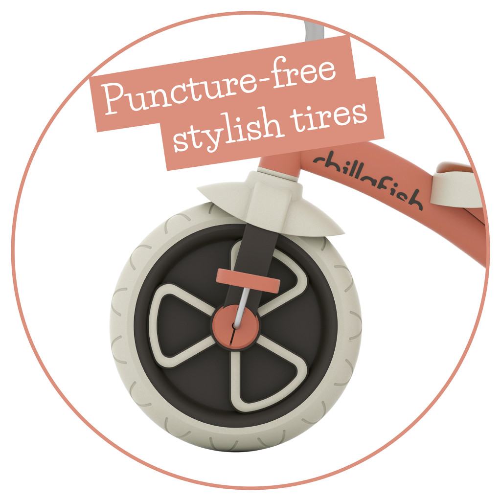 Kerekeinek különlegessége, hogy tömör gumiból készültek, így nem lehet őket kiszúrni. Mindez a biztonságos és strapabíró használathoz nagy mértékben hozzájárul.
